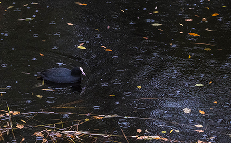 - In de stadspark gemaakt, leuke structuur is de bladeren. En leuk de druppels op de rug van de meerkoet.