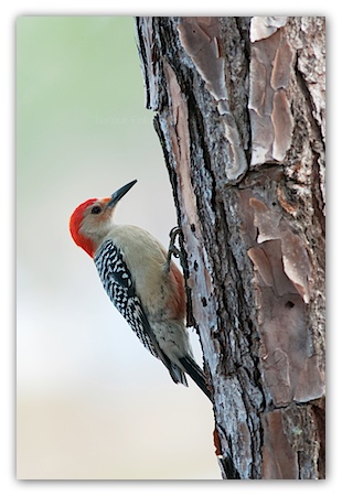 Hierna kwam de Red Bellied Woodpecker (25 cm Roodbuikspecht) waar Jacco het linkerbovenhoekje ook groen gemaakt heeft en tevens wat contrast toegevoegd wat de foto zeker ten goede komt. Het geheel oogt na de bewerking frisser en helderder.