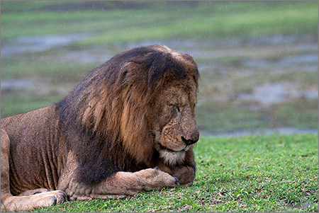 - Leeuw in de regen. Ndutu, Tanzania. Leuk beeld. 200 mm, 1/640, f4. ISO 400