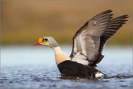 - Koningseider, Alaska. Prachtige vogel en dito foto. Mooie achtergrond, licht en voorgrond. Eigenlijk alles goed, een fraaie plaat.