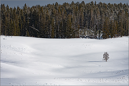 - Plateau* en lijnenspel in de sneeuw, waarvan *water in een bron sijpelt, Memmot Hotspring. Er wordt gesproken over de compositie; uitdagend, bijzonder genoeg?. Er mist mogelijk nog wat kleur. f/16, 1/320 sec.