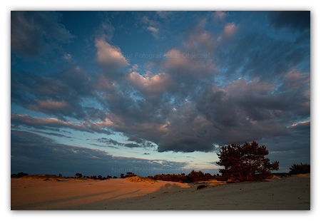 - Aekingerzand: mooie lucht en oranje kleur van zand, met opzetboom los van de horizon gefotografeerd